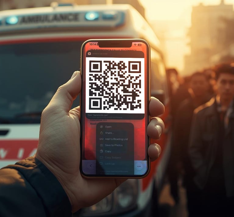 This QR code can be easily scanned using any smartphone camera, allowing responders or bystanders to instantly access the same emergency information when needed.